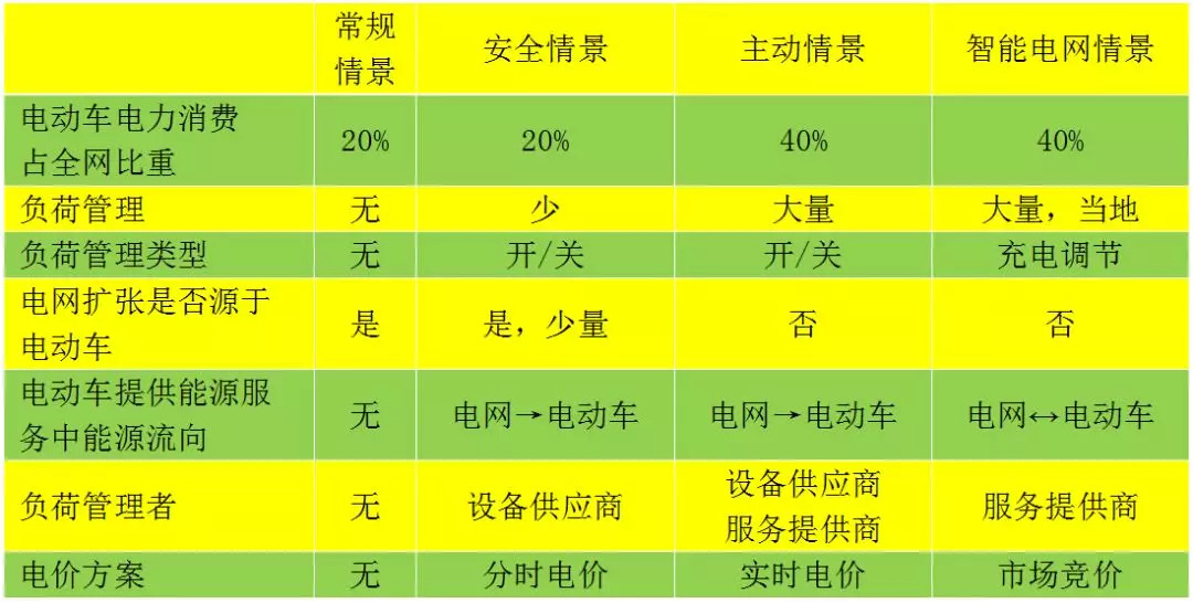 智能充电实施的不同阶段代表着电动车和电力系统一体化融合的不同层次。这些不同阶段包括:常规情景、安全情景、主动情景和智能电网情景阶段。从常规情景到智能电网情景,电动车消费电力占电力系统全部电力需求的比重在不断上升。常规情景和安全情景阶段,这个比重在20%左右,主动情景和智能电网情景阶段,这个比重在40%左右。