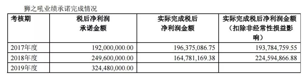 这个业绩对赌直接导致了迅游科技在2018年计提的8.5亿元商誉减值,年报数据显示,狮之吼在2018年营收4.63亿元,净利润1.64亿元,未完成业绩对赌。