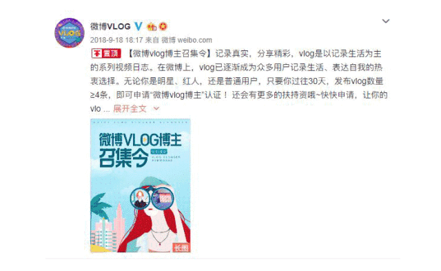 4月25日,抖音宣布放开15秒的时长限制,用户最多可上传1分钟视频,时长大于30秒的原创Vlog,即可参与“Vlog十亿流量扶持计划”。同一天,百度旗下的好看视频也传出把Vlog作为2019年发展重点的消息。