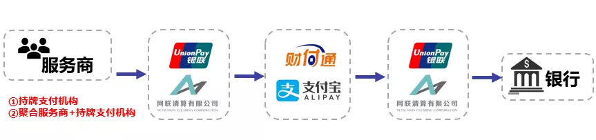 2018年初,银联及网联为配合“断直连”工程,在收单侧和发卡侧改进了原有的直连形式,形成了当下的间联方案,即“服务商—银联/网联—支付宝/微信—银联/网联—银行”。