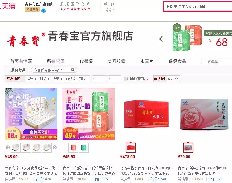 同时,浙江胡庆余堂曾经在2015年8月至次年9月期间生产过的青春宝品牌化妆品,目前已在市场难寻踪迹,天猫青春宝官方旗舰店的在售商品也均为保健品。