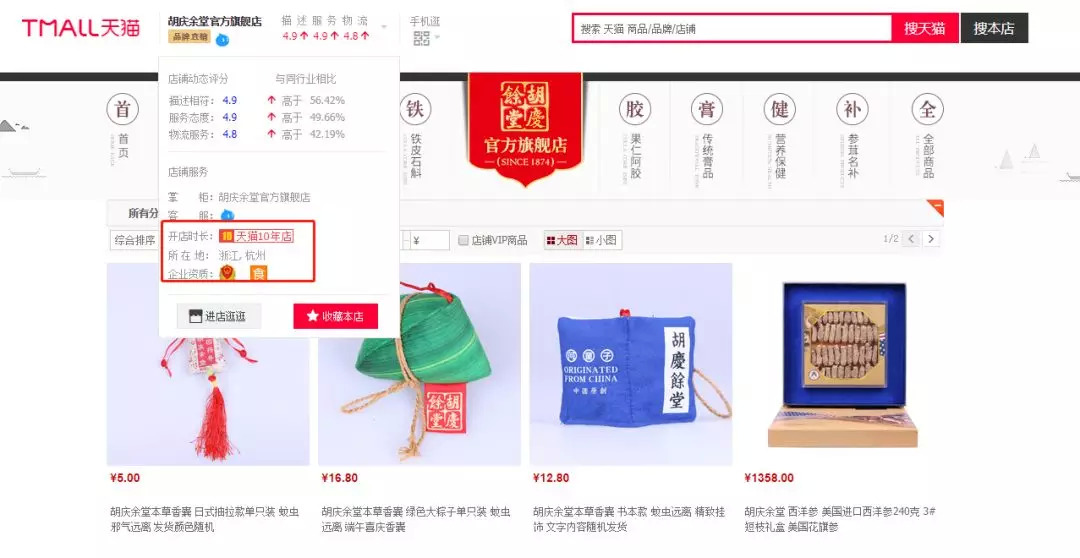 ▍胡庆余堂官方旗舰店(5月13日截图)
