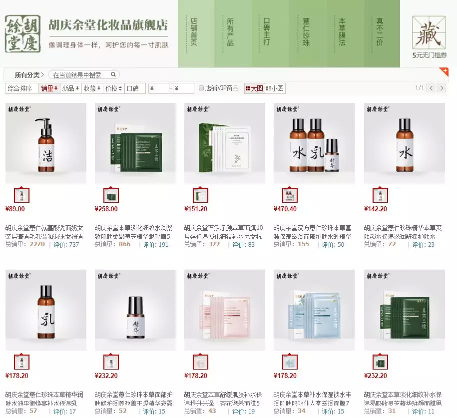 ▍胡庆余堂化妆品旗舰店(5月13日截图)