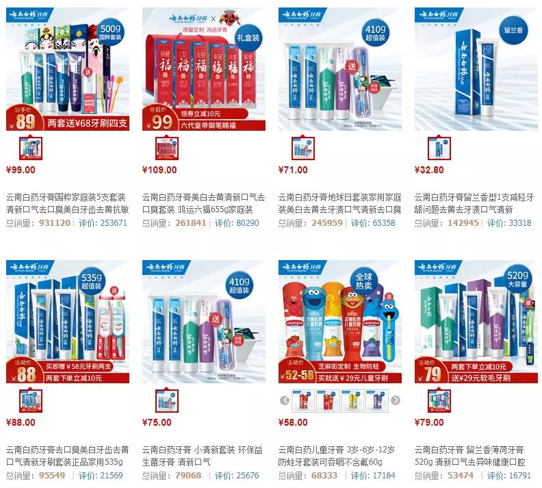 ▍云南白药旗舰店牙膏销量(5月13日截图)