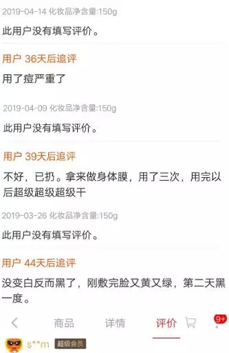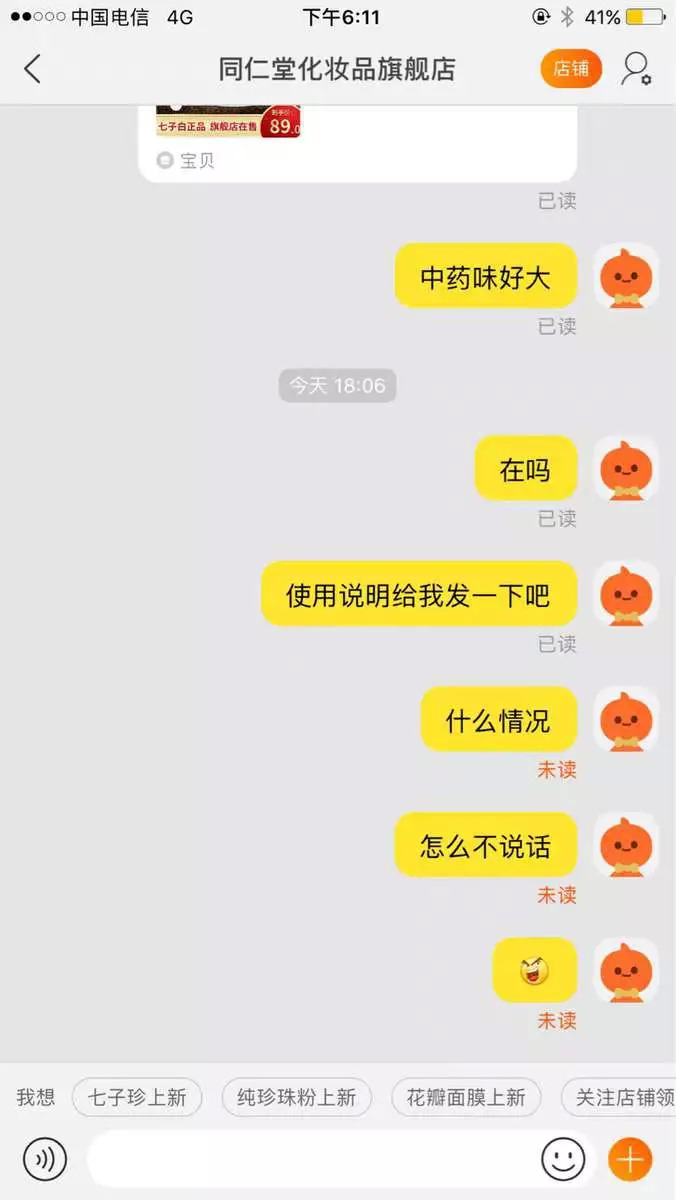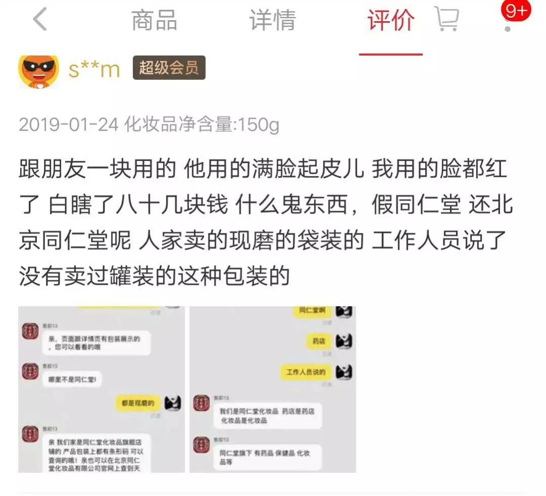 南有庆余堂,北有同仁堂,虽然比胡庆余堂晚了三年“触网”,但同仁堂在线上的表现还算不错。其品牌化妆品旗舰店内月销最高的是一款白面膜粉,共4349笔(5月13日数据)。而据同仁堂官网介绍,近20年来,同仁堂开发新产品679个,其中药品176个,保健食品92个,食品288个,化妆品123个。但大耳朵注意到,同仁堂化妆品旗舰店内的化妆品,追加评价好评率并不高,涉及用户体验感差、售后不及时回复、线下未查询到线上产品等评价。