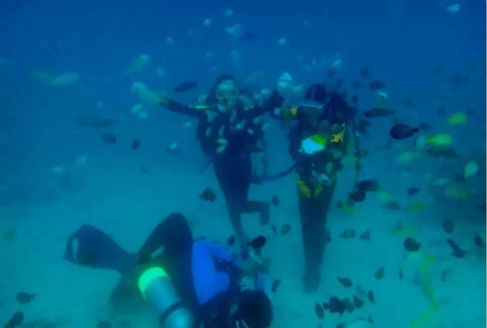我们不知不觉潜到十多米,刚开始下水时,耳朵还有些不适应,让自己镇定下来之后,做好“排压”动作,忽然觉得水中不同于陆地上的嘈杂,更加安静自由,感受到了海底世界的绚丽与温柔。