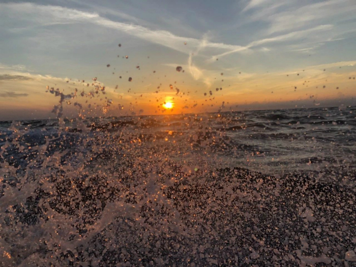 出海的那天,天还没亮我们就出发了,大家收拾好装备、潜店的厨房也为我们做好了早餐装上船只。仙本那的浪很大,船飞驰在一望无际的海面,在浪花中看了日出,偶尔还有飞鱼随着浪花给你小惊喜。