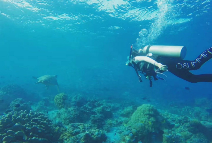 喜欢上潜水是在2015年的台湾环岛旅行中,在垦丁和好朋友一起水肺潜,她曾是花样游泳运动员,水性超凡,在她的带领下,我开始越来越喜欢待在水里。