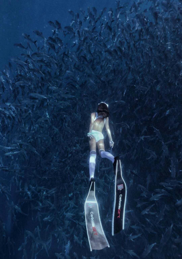 我们人类起源于海洋生物,虽然人类现在已经完全是陆生生物,但至今仍保留着海洋生物祖先的痕迹。这让我时常幻想最原始的感受,在水里让我有一种追寻本真的感觉。这片纯净的蓝,会让人感受到内心的召唤,我们在水中学习调整内心的平和与面对外界的丰盛。人类只有在感受到自己的渺小时,才会珍惜大自然、珍惜所拥有的一切。