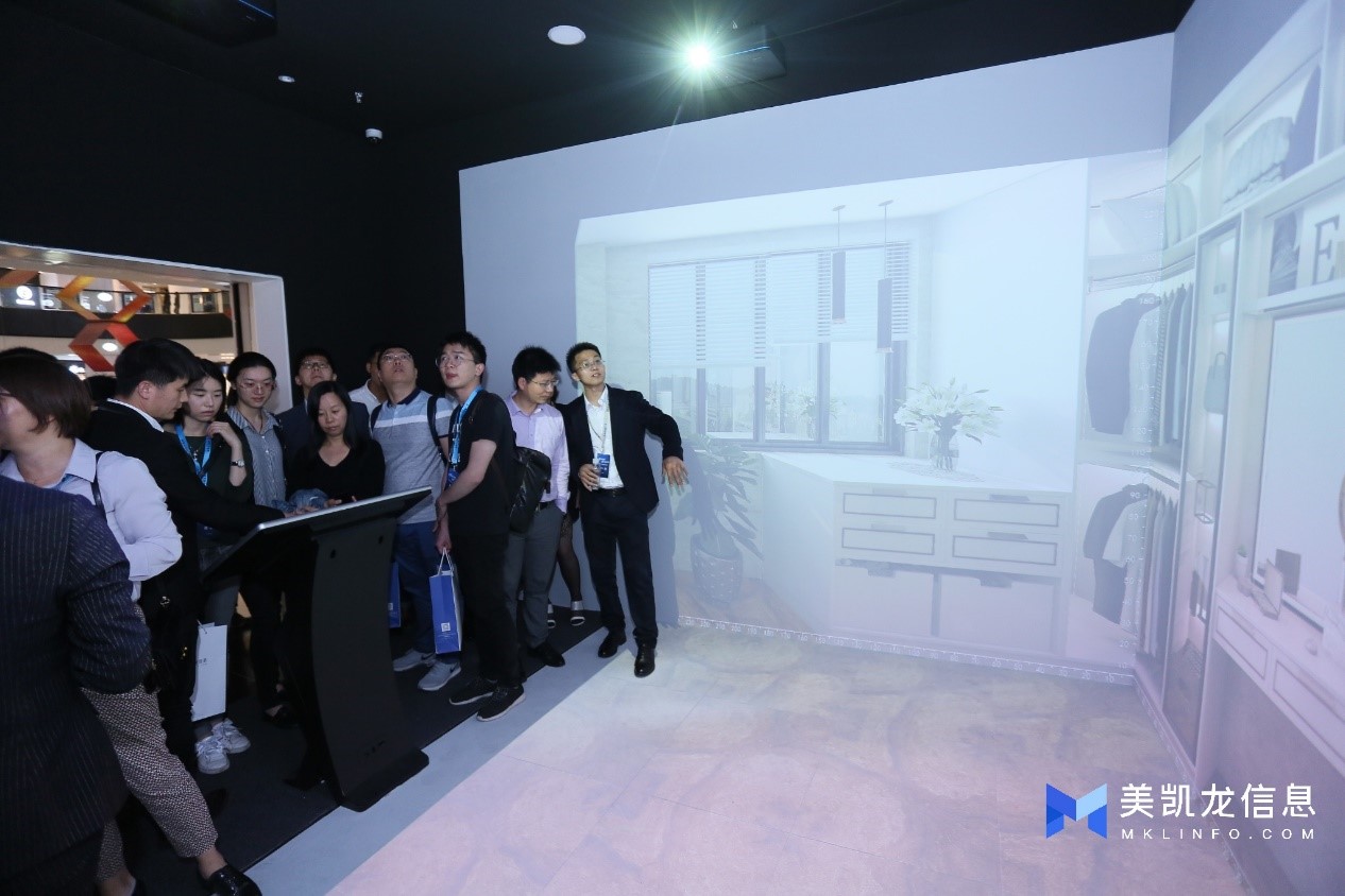 据上海云绅智能科技全息项目部总监王琦琛介绍,全息屋用多台投影仪投射到多个墙面及地面,用人工智能算法进行图像融合,用裸眼3D技术实现1:1的呈现,让用户能够身临其境感受设计效果。不仅如此,云绅全息屋还利用了UWB定位技术实现了视觉跟随,实时捕捉用户位置,并更新出最符合用户当前位置的3D透视视角的画面。这些尖端技术实现了商户在有限空间展示无限商品;并为设计师提供设计方案的定制转换工具,精准传递设计理念和效果,并让消费者真切地体验和感受海量设计方案,这款黑科技产品所带来的商业价值相当可观。