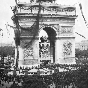 按:1885年5月22日,一代文豪维克多·雨果去世,法国为他举行了盛大的国葬,200万人参加葬礼,法国全体人民甚至整个欧洲都为此陷入哀悼。此种荣誉,法国历史上没有任何其他人拥有过。法国时任议长弗洛坎在演讲中说:“65年来,对我们法国人而言,他的声音和我们民族最令人悲痛而又最为光荣的经历联系在一起,几代人为他的热情所陶醉,受到安慰和鼓舞。我们中有谁会不从内心深处去感激他?我们的民主制为他而哭泣。他曾经讴歌了民主制的种种伟大之处,同情过各种各样的处境悲惨者。弱小和卑微的人总是对他的名字产生敬仰之情,深知这位伟人关怀着他们……”在葬礼这一天,凯旋门被巨大的黑纱包裹了起来,法国共用去了价值100万法郎的鲜花和花冠。