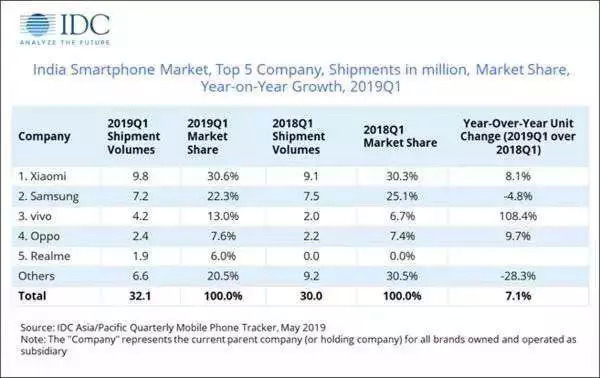 根据市场调研机构Canalys的报告,在国内市场,2019年Q1小米是国产手机厂商中跌幅最大的一家,出货量为1050万部,同比下滑13%,市场份额从13.3%下降到了11.9%。
