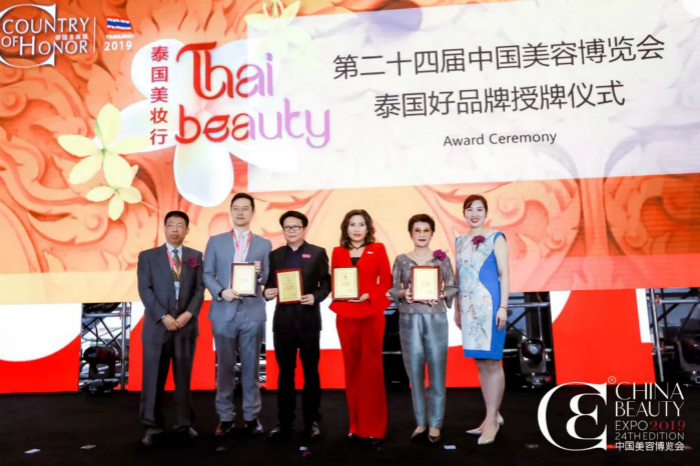 随后,中国贸易促进委员会轻工分会副会长王本和先生、常务副主席兼秘书长桑莹女士共同为这个称号的获得者代表进行颁奖,他们分别是K.O.P.International董事长Ketmanee 、爱诗诗英德(大众)有限公司副董事长布沙波、百特威(泰国)有限公司执行董事帕董萨、Namu Life-SNAILWHITE董事长Boonchai。随后他们也在获奖感言里表示,将继续针对中国市场研发出更适合中国女性的产品。