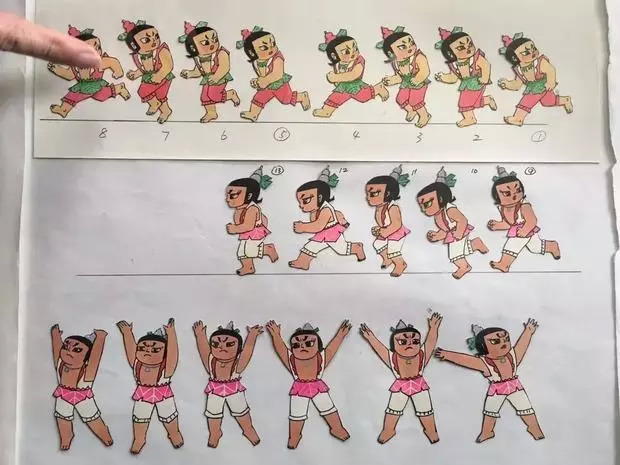 剪纸动画的拍摄过程类似于定格动画,将角色细微的动作变化通过关节的转动摆出来,再用一帧一帧的画面串联出整个动作。以葫芦娃的角色为例,原模型只有一根手指大小