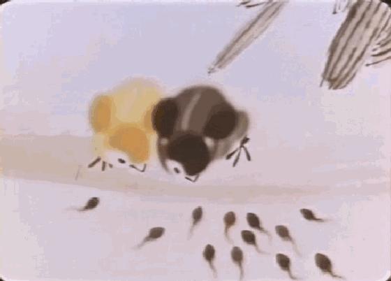 进入80年代,坚持”创新”理念的胡进庆还独创了水墨剪纸动画,开创了叫做"拉毛"的工艺手法,以手撕代替剪刻,制造出动物身体轮廓毛茸茸的效果。
