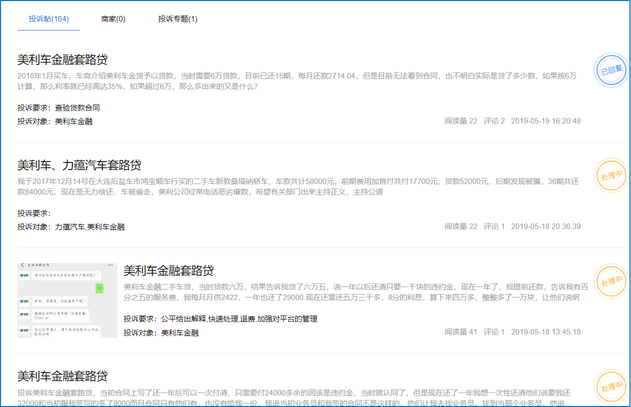 而在整个二手车行业中,类似的事件并不是个案,除了美利车金融外,根据媒体报道和消费者投诉的情况显示,优信二手车、瓜子二手车、人人车等也多次出现用户不知情的情况下被增加贷款的情况。