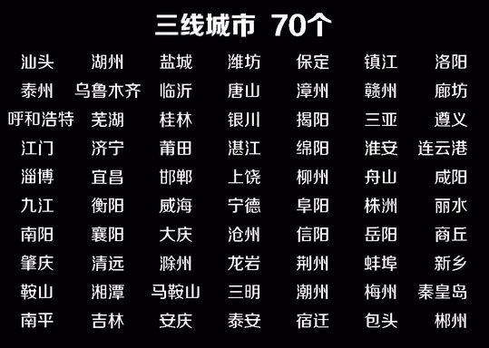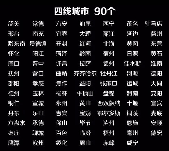 此份榜单中,除4个一线、15个新一线城市之外,还有30个二线城市、70个三线城市、90个四线城市、128个五线城市。