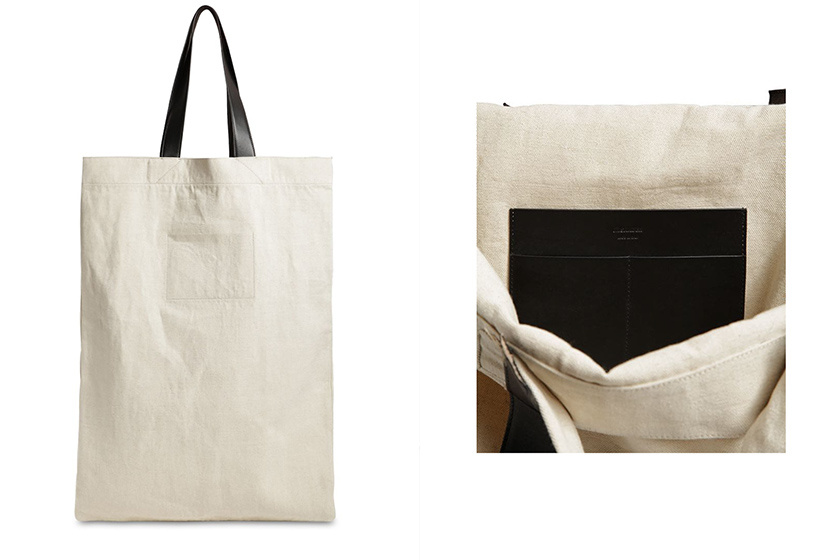 包袋使用有机棉和亚麻材质制作,二者的融合呈现独特的质朴观感,让人联想到周末到意大利乡野游玩时的场景。黑色的手柄则使用了皮革,光泽而流畅的质感是“Less is More“设计语言的书写。“Oversize flat shopper”帆布袋将会在即将到来的6月发售,如果你对以往过度矫揉造作的种种其它设计款式感到厌倦,不妨在这个夏天选择静一下心。