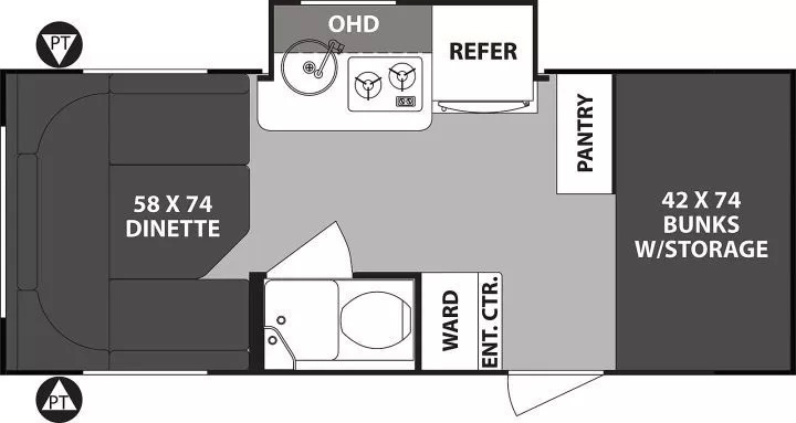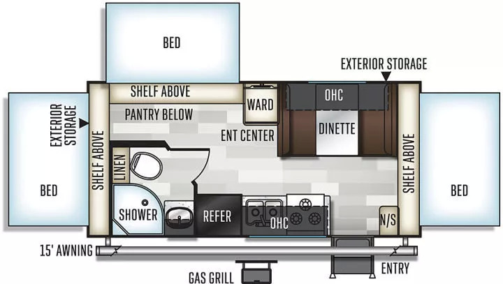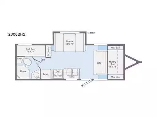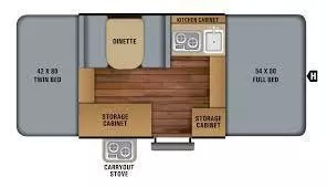比如同样是Forest River旗下的Flagstaff Shamrock系列,在硬墙体的基础上,可以通过软蓬扩展出足够多足够舒适的床,净重不到4200磅——