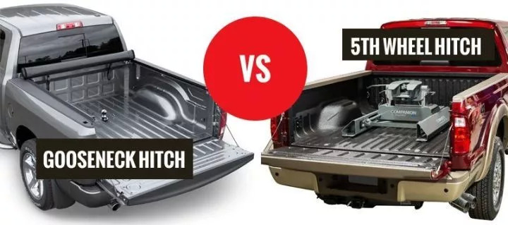 下图中左侧的Gooseneck式拖钩,对比右侧的5th wheel式拖钩——