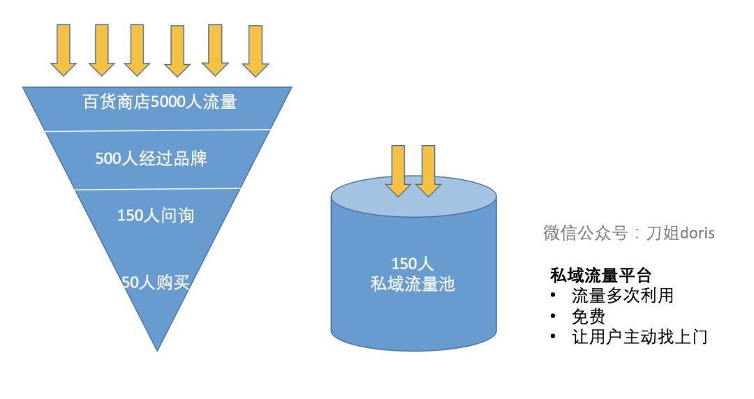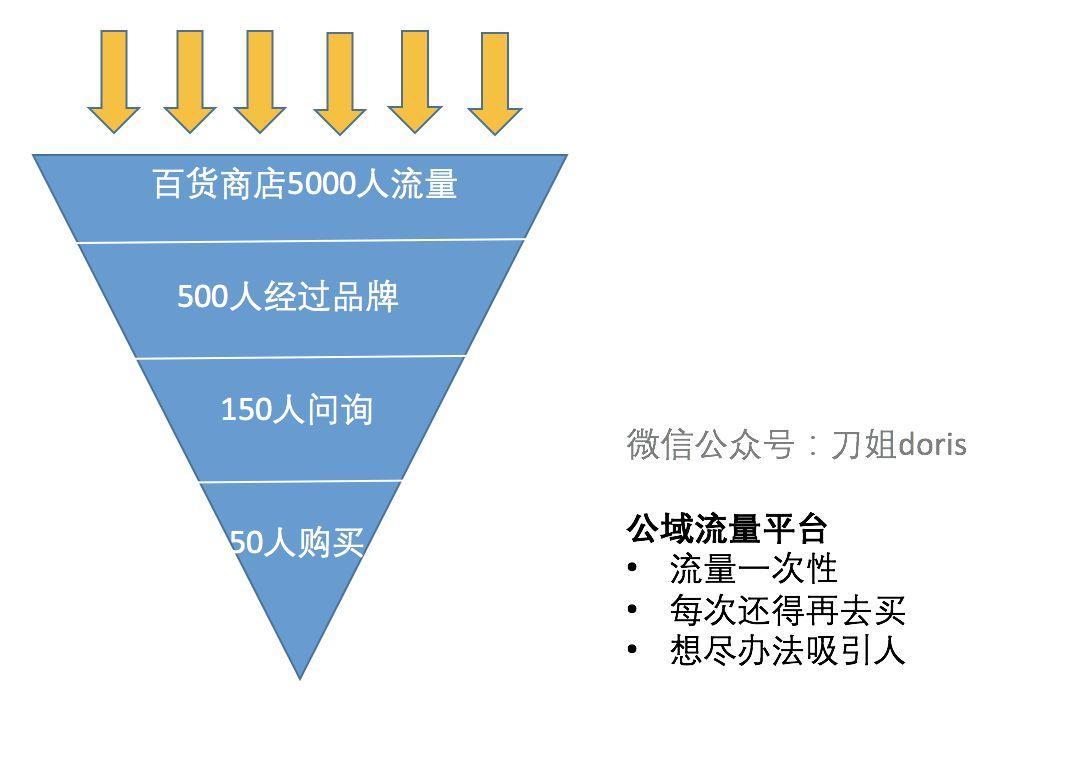 所以虽然百货商店流量很大,但是你真的留的下客户数据只有50人。