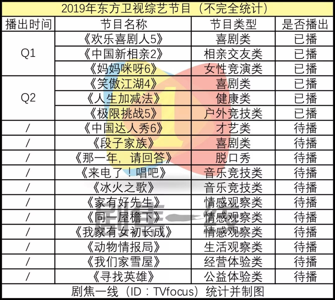 尽管东方卫视在棚内喜剧领域有明显优势,但是其他节目都表现平平,类型上多多少少有些“跟随”的意味。待播的《我们家雪屋》《家有好先生》《我家有女初长成》都是观察类的新节目,《冰火之歌》《来电了!唱吧》则是音乐竞技类综艺,结合2018年末东方卫视推出的选秀节目《下一站传奇》来看,尝试虽多,但在题材创新和讲故事方面略显不足,与其他卫视相比,缺少现象级综艺。