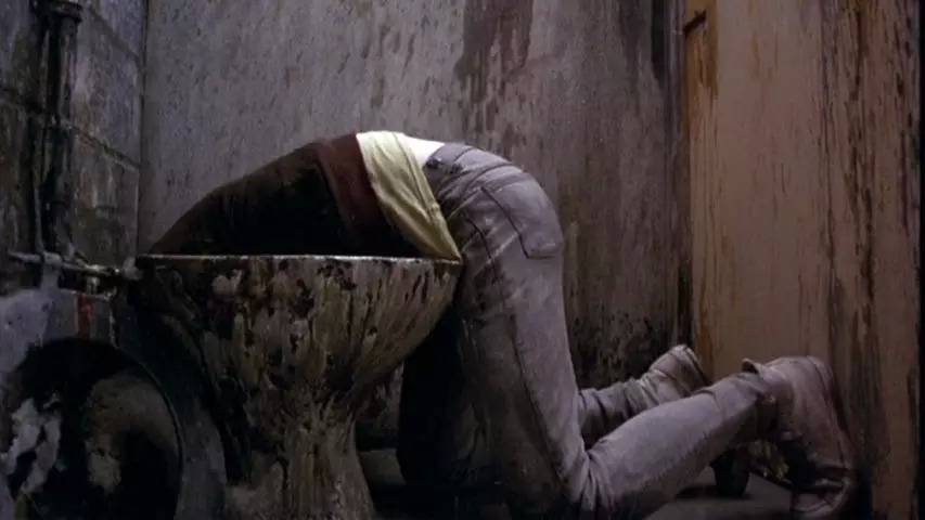 一幕一幕,教科书般的毒品镜头中,最让人震惊的是主人公Mark Reton为了捞出被他拉进马桶里的毒品,然后整个人钻进英格兰最肮脏的厕所里的马桶“潜水”,寻找那颗遗失在马桶世界里的鸦片栓剂。