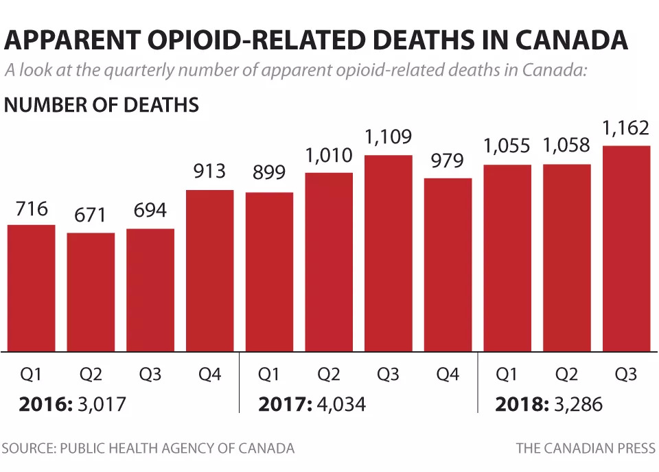 1. 加拿大人口3706万(2018年统计),是苏格兰的6倍。据Global news报道,在过去三年内,有1万加拿大人因嗑药过量死亡,平均每天有10人死亡。