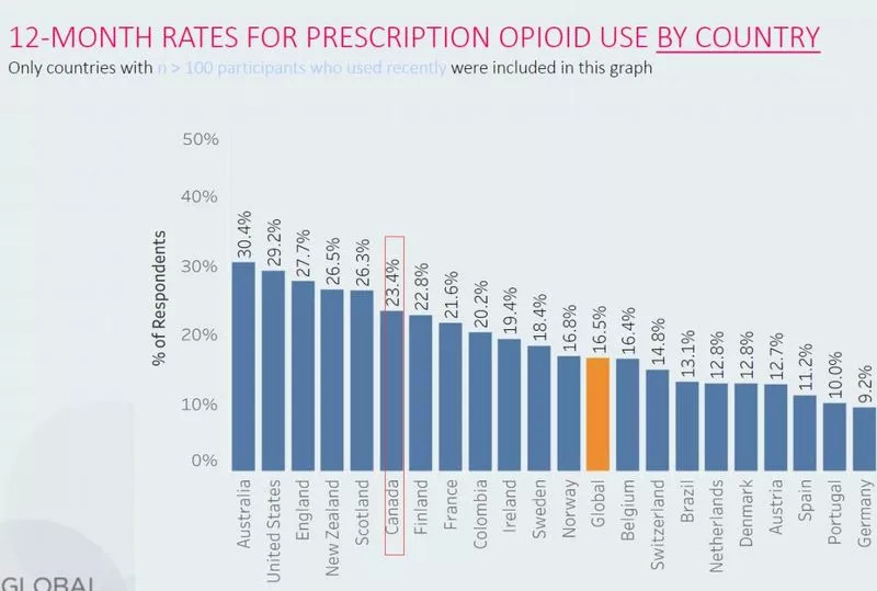 因为NPS的差异很大,成分和效力不一致往往是造成他们对人体极大风险的重要因素。报告中,接受调查的加拿大人中有12%使用了NPS,几乎是全球平均值4.3%的三倍,成为了全球第二高的国家。其中25岁及以下的加拿大男性为此类药物的最常使用者。这些药物通常以粉末,晶体或药丸的形式供给吸食者。因为具有迷幻效果特征(包括LSD仿制品), 这种新型毒品扩散趋势强劲,而且药效强劲,所以阿片类如乙酰芬太尼和卡芬太尼已成为造成加拿大人嗑药过度的直接刽子手(成人致死量约为2毫克,芬太尼的毒性甚至是海洛因的40至50倍)。