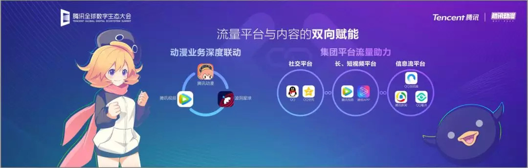 所以,去年的那次调整,希望让腾讯每一个内容板块都有一个核心点,不论是在平台、用户还是其他核心优势上,大家一起发力,首次提出了“动漫生态”这个说法。