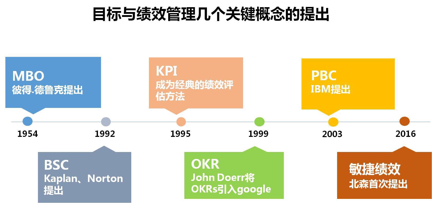 1999年Intel公司发明了这种方法,被 John Doerr推广到Google,后来Oracle,LinkedIn等高科技公司并逐步流传开来,现在广泛应用于IT、风险投资、游戏、创意等以项目为主要经营单位的大小企业。