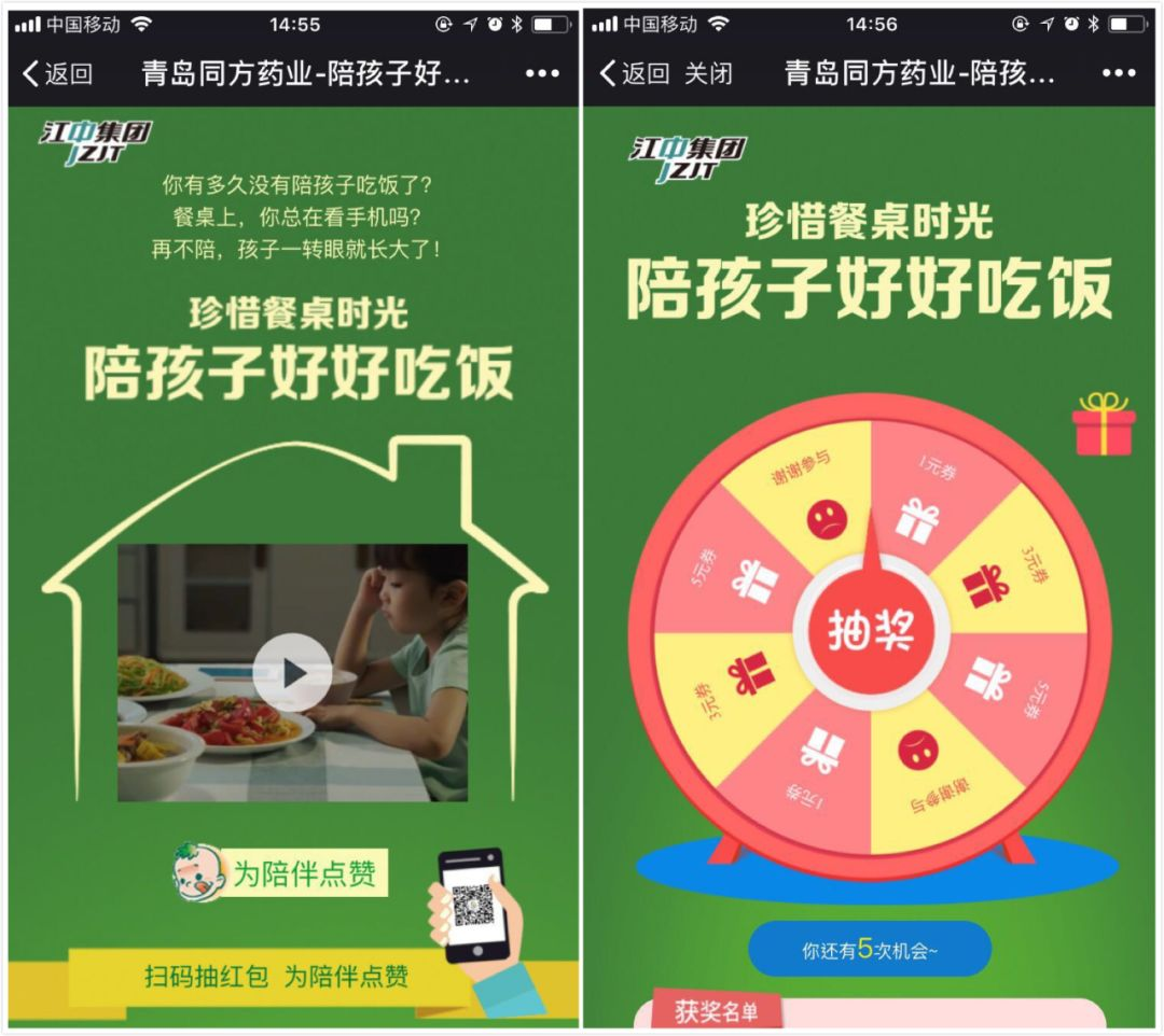 如何实现品牌与终端的结合?在传播效率降低、渠道力量增强的今天,药企越来越向渠道倾斜。儿童装江中健胃消食片在线上发起了“这个六一,陪孩子好好吃饭。拍照上传赢迪斯尼门票”的活动,并与线下5000家门店进行了一系列活动——抽奖、赠礼,承接线上话题的同时,也实现了传播与转化。