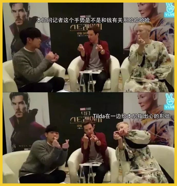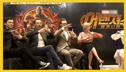 《复联3》来宣传的时候,正好赶上“在我心中收藏”这一手势大火的时候。▼