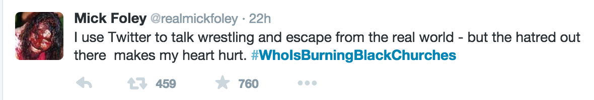 推特网友Mick Foley称推特是他/她逃离现实世界的途径,然而“这儿弥漫的仇恨让我伤心”。