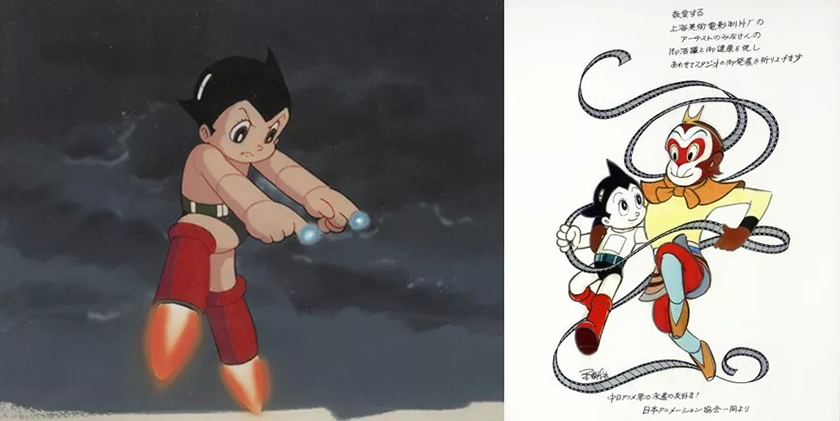 “迷弟”手冢治虫见到偶像后,还手绘了孙悟空和阿童木的“合影”,祝愿中日两国永远友好。