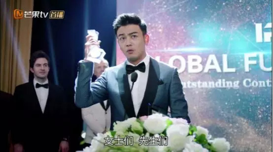 一边是杨烁饰演的金融精英向前在公海的豪华游轮上获得业内最高奖项表彰,风光无限;