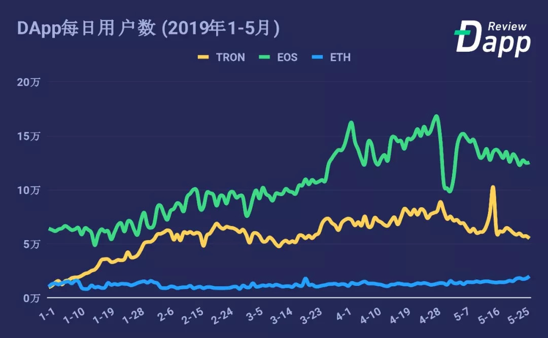 2019年1月至今各大公链DApp用户数据变化图