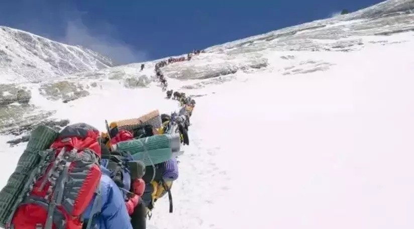 但另一边,登山者却增加了,于是“堵车”发生了。