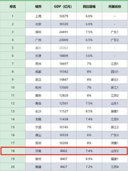 (济南如果不算上莱芜,2018年GDP还排不进前20)