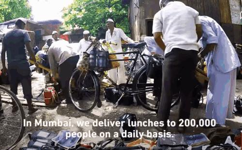 在大城市孟买,许多在市内工作、离家好几十里的人,就算中午不回家,也每天都能吃到家常菜。当然,这也并不是他们对象送来的,而是来自一群专门从事家常午餐配送的外卖小哥。