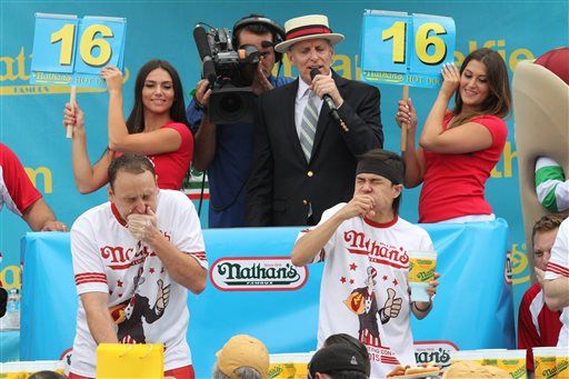 在康尼岛,23岁的Matt Stonie在10分钟内吃下了62个热狗,夺得了“内森国际吃热狗大赛”的冠军。