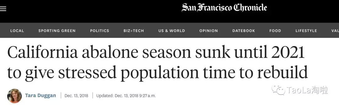 2018年,加州规定:娱乐性抓捕鲍鱼将停止,至少禁止至2021年4月。所以这两年想抓鲍鱼的小伙伴就忍忍吧!