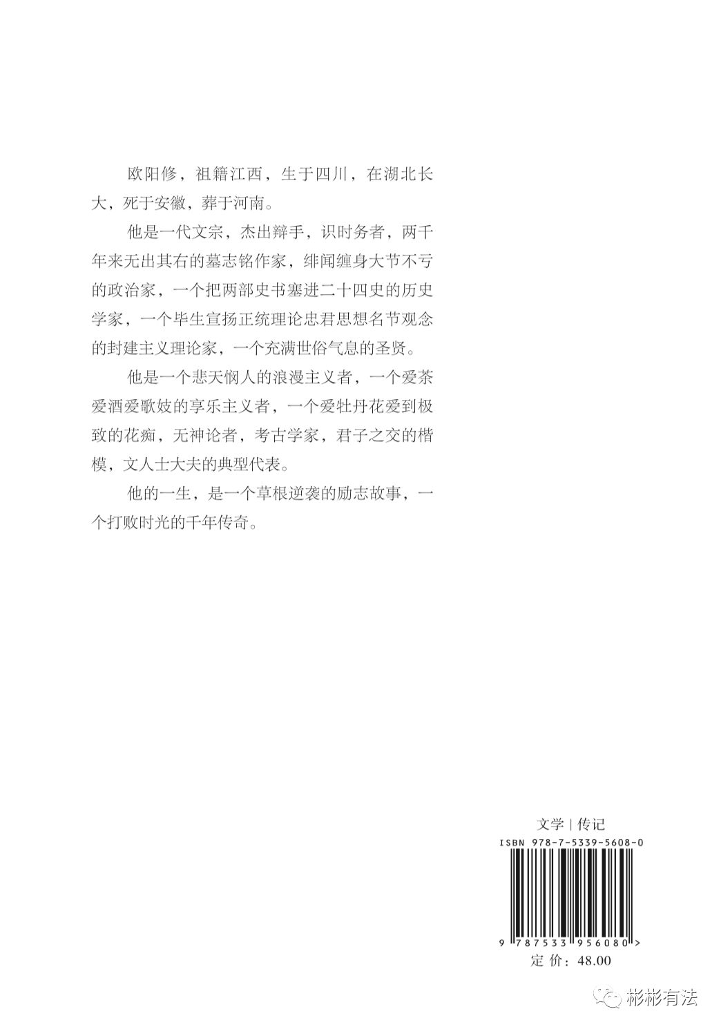 我希望,这本《欧阳修传》,可以帮助梦想“草根逆袭”的年轻人,发现人生建设的价值观、方法论。