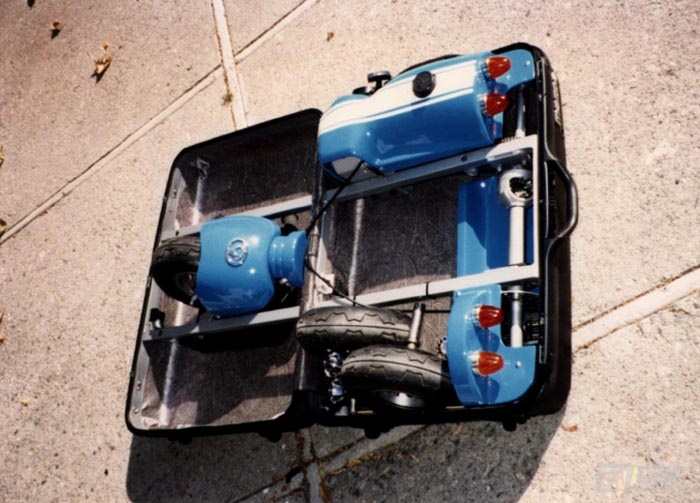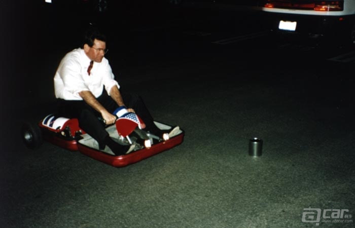 1991年,首台行李箱车被打造出来,暂且称呼它为1.0,因为当时打算将它拿到美国展出,所以1.0采用了红色涂装,细节处还有美国国旗图案。