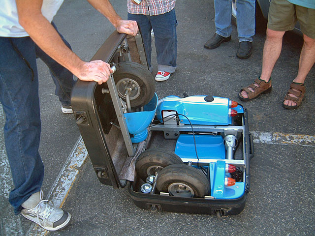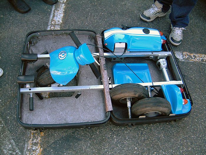 但当你花个20秒左右小心翼翼地打开它,这个潘多拉魔盒就会“幻化”成一台三轮小车,其足以容纳一名成年人。