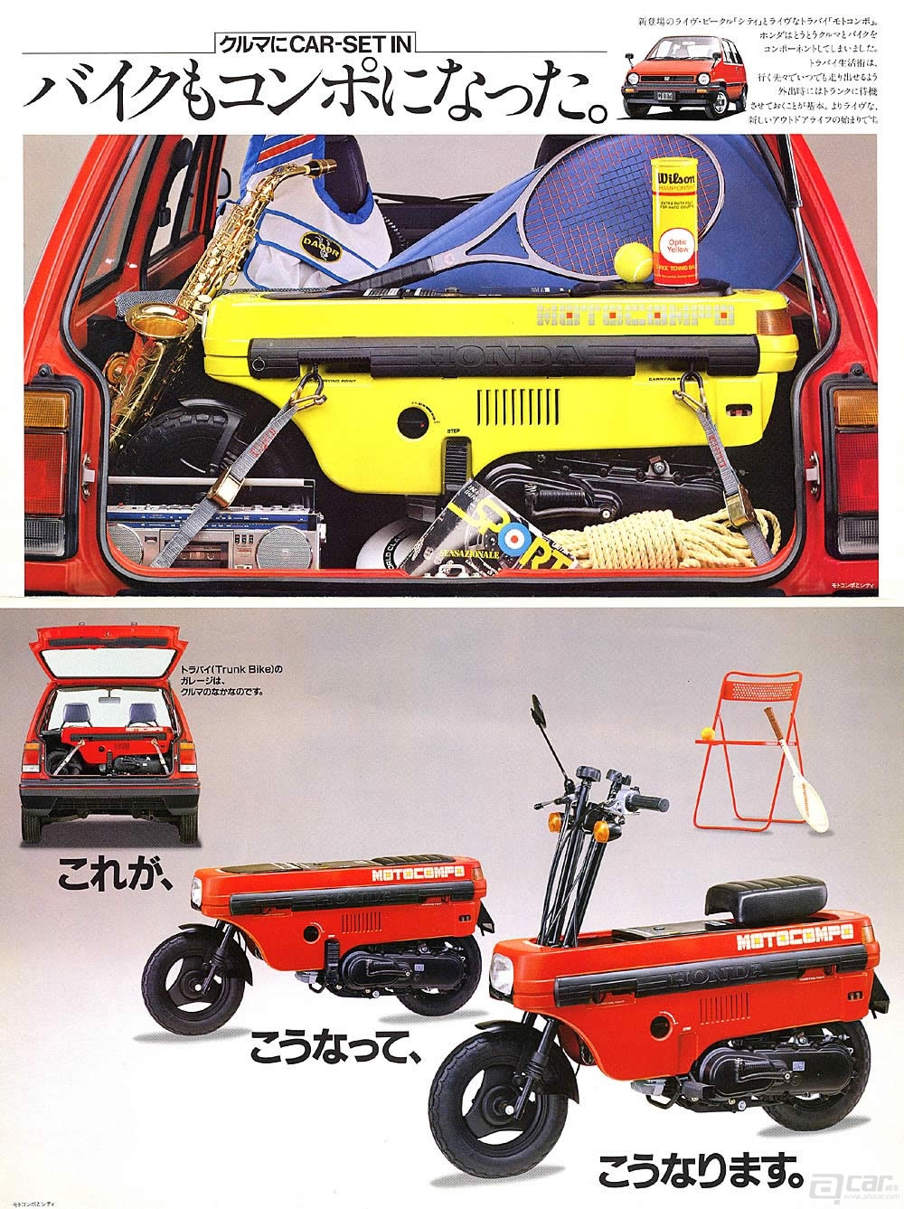 早在1981年本田就拿出名为MotoCompo的折叠小摩托,这款尺寸袖珍的摩托车可以放进大部分本田车型的尾箱中。