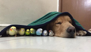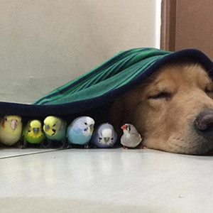 巴西圣保罗EQ超高的金毛猎犬与8只小小鸟、1只小仓鼠成为了形影不离的小伙伴,看看这画面简直萌化了!