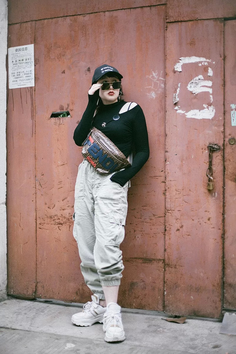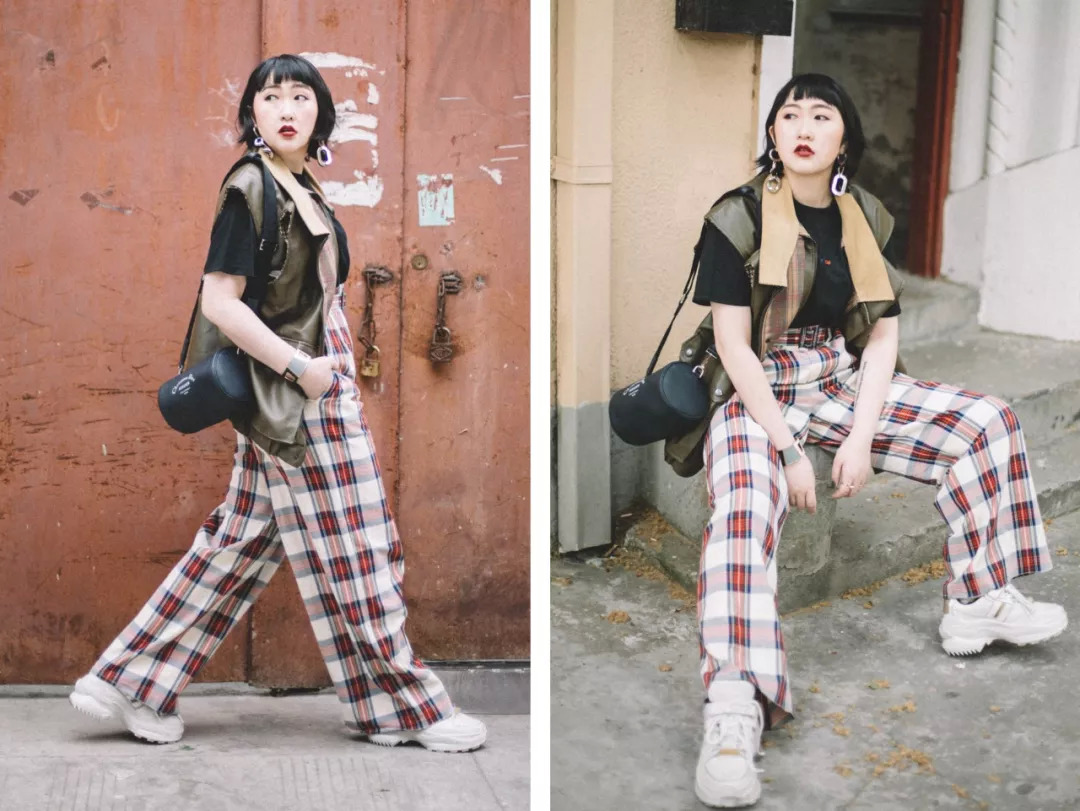 不过工装裤带着oversized的属性,再加上大头鞋,上半身要配件贴身的skinny单品,才能视觉上有一定的显瘦效果。