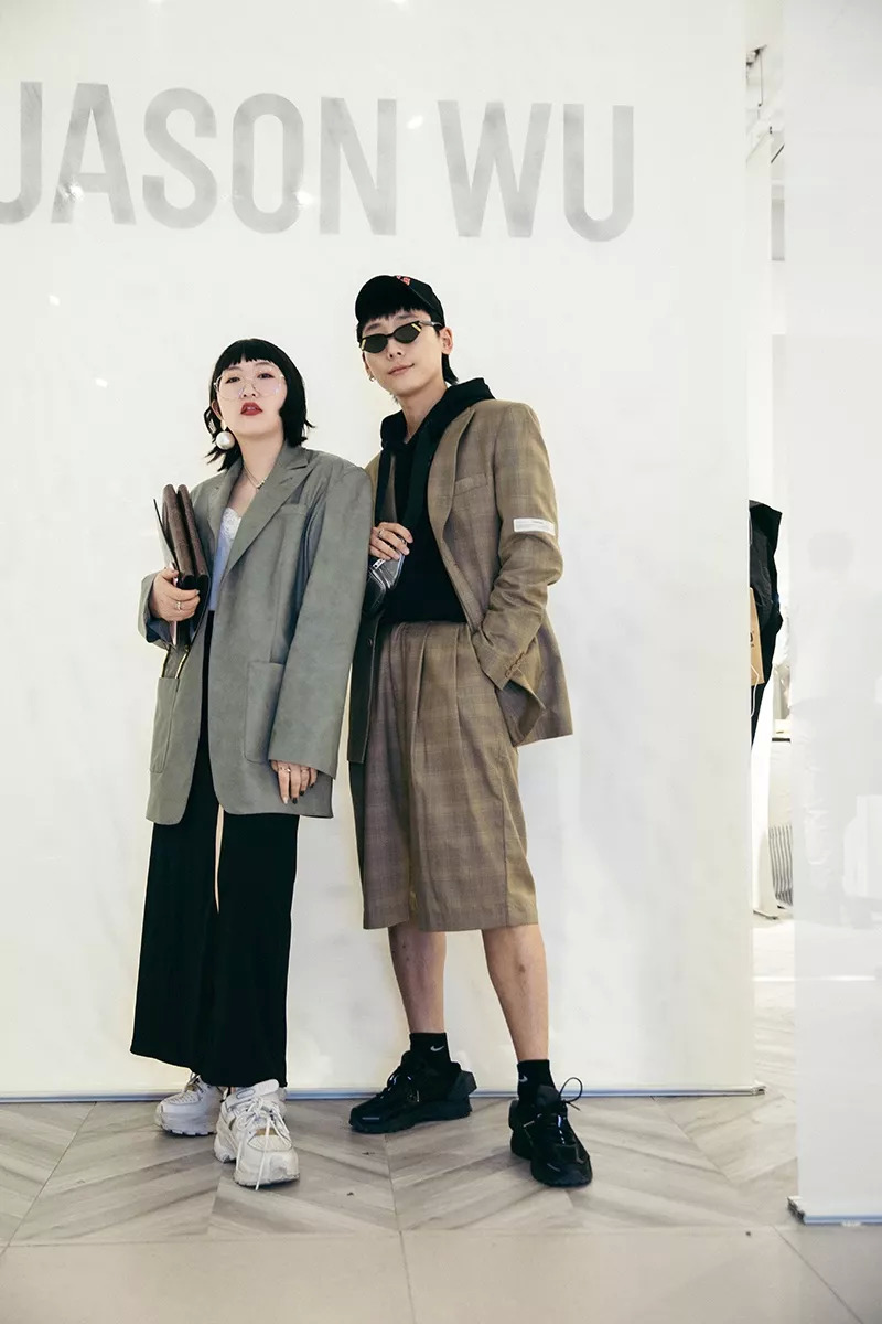 大头鞋很难正式?对!但是因为要参加的是职场感的Jason wu家的活动,我选择了混搭西装和开叉裙,制造娘man平衡感。