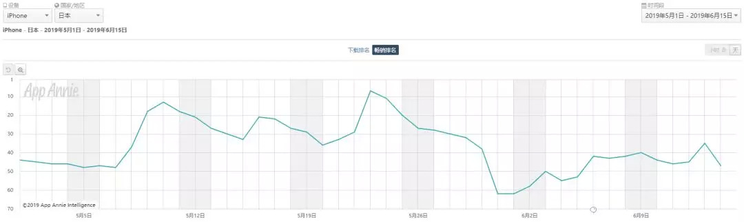 《荒野行动》5月份于日本iOS畅销榜变化